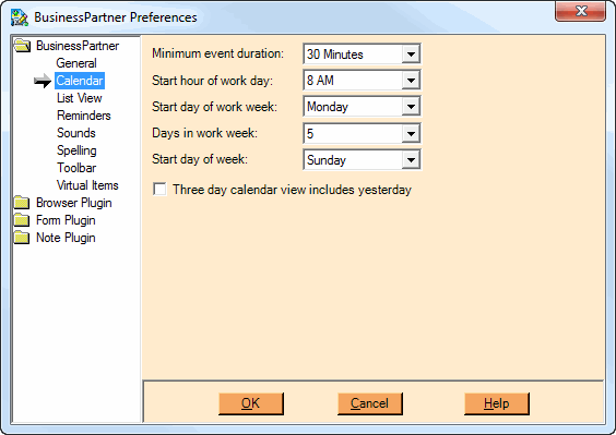 These options determine how the Calendar Pane appears in its different views. The fields above are described in the table below: