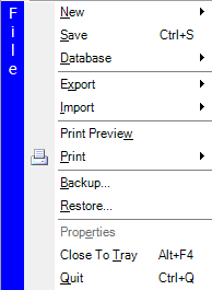 The File Menu provides access to various features that are generally available no matter what type of item is being displayed. The table below itemizes the minimum set of File Menu entries: