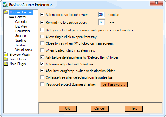 Check this to have your unsaved data automatically saved to disk. Then select the number of minutes between automatic saves. We highly recommend using this option so that you don’t lose recent data. NOTE: This option is NOT the same as a backup operation. It will only save, for example, a currently modified note before you select “Save”. |