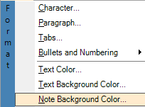 The Note Plugin adds its own Format menu to NoteMagician’s menu, as pictured above. The purpose of these menu options are as follows: