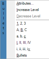 When you want more control over your lists, choose the Attributes option from the Format. You will see the dialog below:
