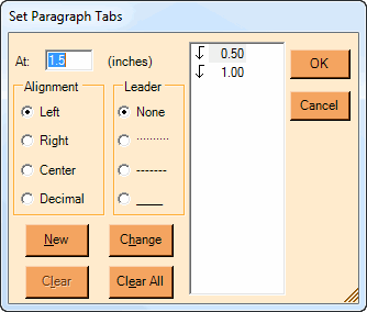 Tab settings affect the paragraph where the current cursor position sits. In general this dialog works as follows for each tab: